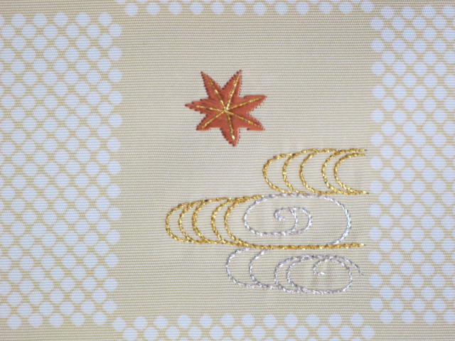 千代田染繍の刺繍と堰出の疋田の名古屋帯「龍田川」(秀雅) |