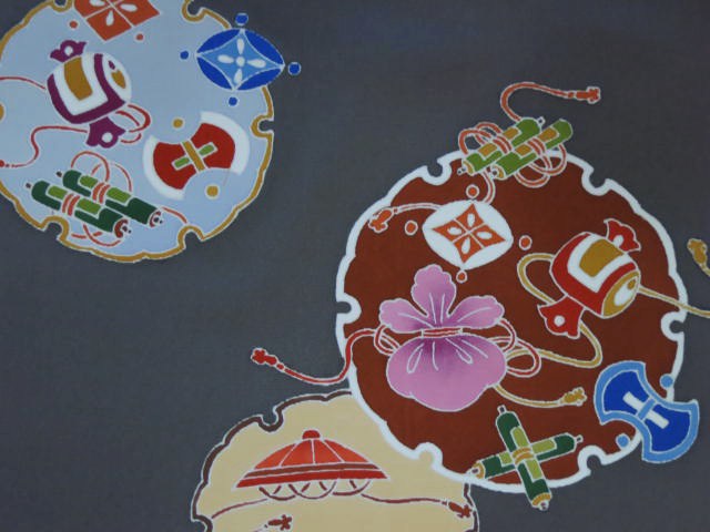 野口の付下げ「箔剥がし、雪輪取り宝尽し」 |