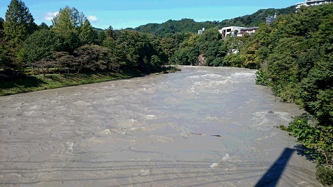 台風後の奥多摩川青梅市水野公園 |