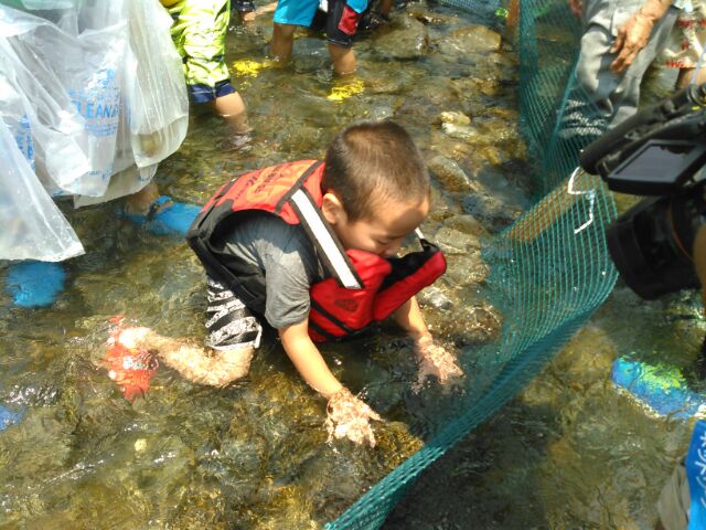 地元の子供もいますが23区からの参加もあり、こんな大きな魚を触るのも初めての子もいました。