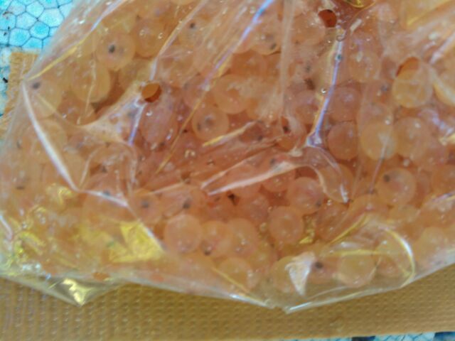 川に放流したヤマメの発眼卵。