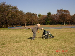 その後 日本庭園。 日本庭園には池があり その橋の袂で画家の方が色鉛筆で絵を描いておりました。母が見せて頂、色々質問をしておりますと大勢の方が話を聞きに集まって参りました。画家の方が母の年齢を聞きますと、2つの絵を見せて下さり、どちらの絵が好きかを訪ねられました。母は、大きな1本の楠の絵が良いと言いますと、画家の方は うんうん よしよし と言ってその絵を下さいました。 そのとたん 母は大勢の方がいる前で押さえきれないほどの声で泣いてしまいました。私は母の泣くのを遮らず、思いっきり泣かせてあげました。少し泣きやむと、ぐるりの人から母を励ます声や、拍手のような賛嘆の声がかかりました。人の琴線に触れることの少ない母にとって心の灰汁が落ちたようです。 いやすっかり ご満悦でした。